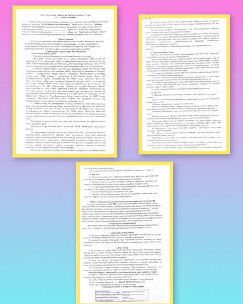 02 сентябрь 2025 0 1 2 3 4 5 Мектепке дейінгі ұйымнің білім беру қызметтерін №____ көрсету шарты Типовой договор оказания образовательных услуг для дошкольных организаций № ____